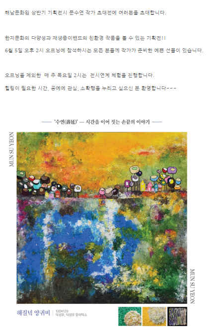 해남문화원 상반기 기획전시 문수연 작가 초대전에 여러분을 초대합니다.